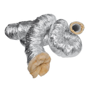 Tubo flessibile in alluminio con isolamento in lana di vetro sezione circolare.