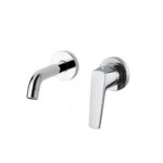 Miscelatore monocomando da incasso per lavabo, composto da parte grezza, parte esterna di finitura e bocca di erogazione.
