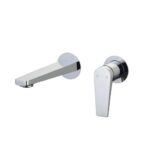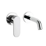 Miscelatore monocomando da incasso per lavabo, composto da parte grezza e parte esterna di finitura e bocca a parete.