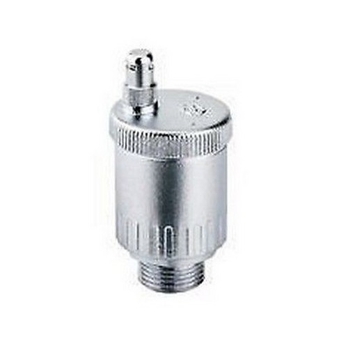 Valvola automatica di sfogo aria. In ottone stampato. Cromata. Con tappino igroscopico di sicurezza. Pmax d’esercizio: 10 bar. Pmax di scarico: 2,5 bar. Tmax d’esercizio: 120°C.