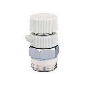 Valvolina manuale di sfogo aria per radiatori. Cromata. Volantino in resina bianco. Scarico orientabile. Filetto a tenuta PTFE. Pmax d’esercizio: 10 bar. Tmax d’esercizio: 90°C.