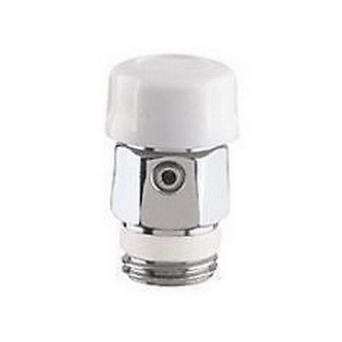 Valvolina manuale di sfogo aria per radiatori con sede di tenuta in gomma. Cromata. Volantino in resina bianco. Filetto a tenuta PTFE. Pmax d’esercizio: 10 bar. Tmax d’esercizio: 90°C. PATENT.