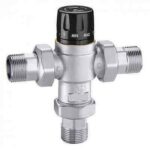 Miscelatore termostatico regolabile con manopola. Per controllo temperatura al punto di distribuzione. Completo di funzione chiusura termica. Corpo in lega antidezincificazione. Cromato. Pmax d’esercizio: 10 bar. Tmax ingresso: 90°C. PATENT PENDING.