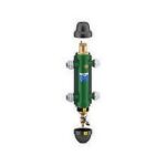 Separatore idraulico. Corpo in acciaio verniciato con polveri epossidiche. Attacchi flangiati PN 10. Accoppiamento con controflangia EN 1092-1. Pmax d’esercizio: 10 bar. Campo di temperatura: 0÷110°C. Attacco sonde di temperatura: 1/2″ F. Fornito di: valvola automatica di sfogo aria, valvola di intercettazione, valvola di scarico. Scelta del separatore idraulico serie 548 Il separatore idraulico viene dimensionato con riferimento al valore di portata massima consigliata all’imbocco. Il valore scelto deve essere il maggiore tra quello totale del circuito primario e quello totale del secondario.
