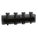 Collettore semplice, componibile. Pmax d’esercizio: 10 bar. Campo di temperatura: -10÷110°C. Accoppiamento a tenuta PTFE. Derivazioni maschio.