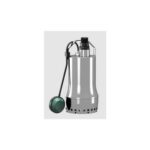 6043943 Pompa sommergibile in acciaio per il drenaggio domestico di acque chiare. Interruttore a galleggiante. Girante tipo a vortice. Passaggio sferico libero 10 mm. Alim. 1~230 V/50Hz. Bocca Rp 1”1/4. Temp. +3 °C +35 °C. Grado protezione IP 68.Dati idraulici