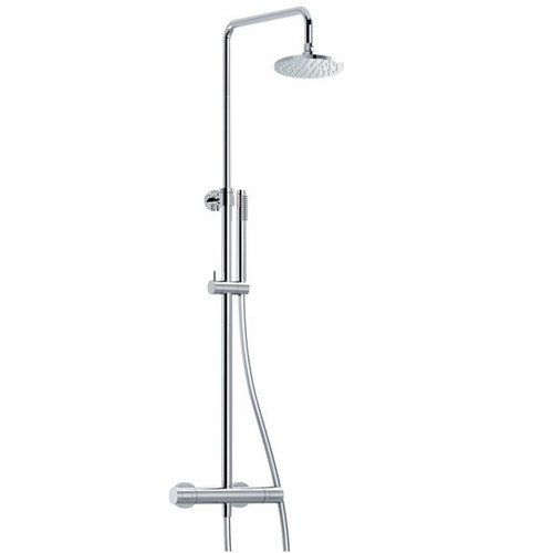 615318 Colonna doccia completa. Colonna doccia estensibile con supporto doccetta, doccetta, flessibile, miscelatore termostatico “COOL BODY” due uscite e deviatore incorporato soffione tondo Ø 225 mm in ottone 8 mm. Disponibile in diverse finiture, per maggiori informazioni contattateci.