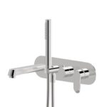 66472E.21.018 Gruppo vasca a parete composto da miscelatore vasca da incasso con deviatore, bocca di erogazione e set doccia.