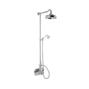 69050.21.018 Colonna doccia con miscelatore termostatico coassiale esterno completo di deviatore, soffione in ottone e doccetta monogetto in ottone 180mm cromo NEWFORM