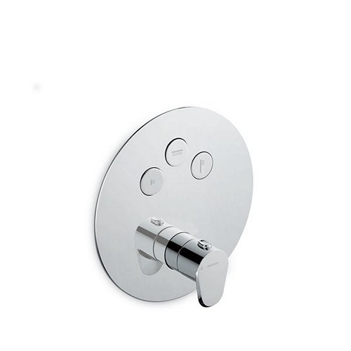 70424E.21.018 Miscelatore termostatico ad incasso a tre uscite, con comando per la regolazione della temperatura e tre pulsanti deviatori ON/OFF.