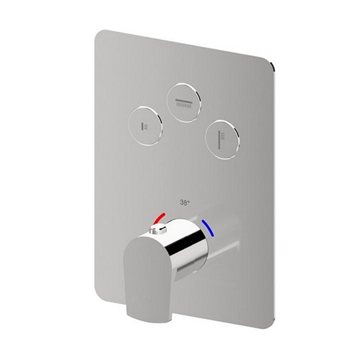 70437E.21.018 Miscelatore termostatico ad incasso a 3 uscite con comando per la regolazione della temperatura e pulsanti ON/OFF.