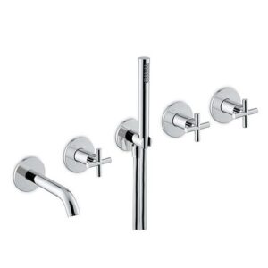 70873E.21.018 Gruppo vasca da incasso composto da deviatore a 3 uscite, bocca erogazione e set doccia.