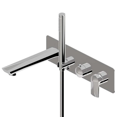72272E.21.018 Gruppo vasca a parete composto da miscelatore vasca da incasso con deviatore, bocca erogazione e set doccia