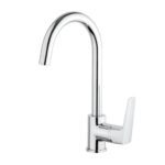 Miscelatore monocomando per lavello con doccia a 2 getti orientabile.