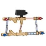 – valvola di zona a sfera 3 vie serie 6480 con tee di by-pass serie 6490 e servocomando cod. 646002 230 V (ac)
