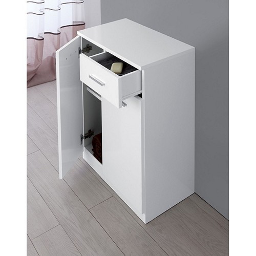 799013 Base in nobilitato melaminico Bianco lucido 18 mm, due ante ed un cassetto.