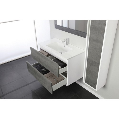 801007 Composizione bagno sospeso 2 cassetti 60cm bianco-cemento Fabula FERIDRAS