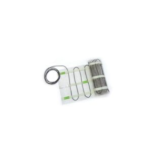 Tappeto radiante elettrico costituito da cavo scaldante fissato su rete di supporto in fibra di vetro adesivizzata. La rete può essere tagliata e piegata a 90° o 180° per adattarne la lunghezza alla superficie di posa. Completo di guaina corrugata da 1,5 m con terminale in ottone cromato per l’inserimento del sensore di temperatura a pavimento dei termostati.