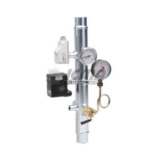 Tronchetto portastrumenti INAIL per centrale termica. DN 65 Tronchetto portastrumenti INAIL per centrale termica. Tronchetto portastrumenti in acciaio zincato completo di termostato di sicurezza, pressostato di sicurezza, manometro con rubinetto e ricciolo, termometro, presa da 1/2” per valvola di intercettazione combustibile, pozzetto di controllo INAIL da 1/2” e attacco per valvola di sicurezza INAIL da 1/2” (non fornita). Fornibile anche con doppio pressostato, di massima e di minima.