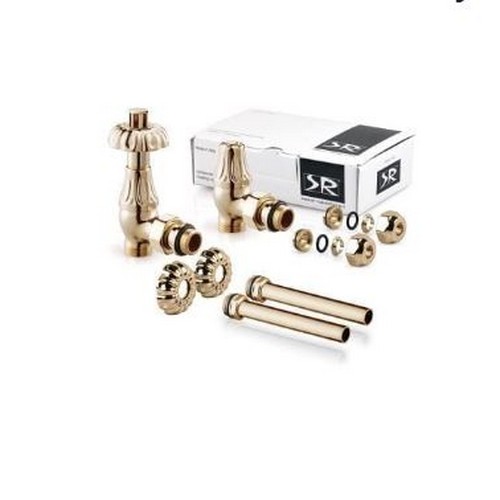 A373-1500Z0P0 Kit composto da valvola termostatica, detentore, a squadra, raccordi per tubo rame ø 15 e kit di collegamento, lunghezza 150 mm x 1/2”
