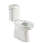 Vaso sanitario monoblocco con apertura frontale e cassetta in appoggio a zaino, sifone integrato con scarico parete