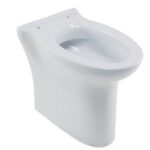 Vaso-bidet, munito di ugello erogatore per funzione bidet, in porcellana sanitaria con ampia superficie di seduta.
