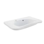 Lavabo ergonomico in porcellana sanitaria con poggia gomiti e fronte concavo per avvicinamento facilitato.