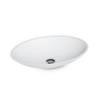 Beverino in porcellana sanitaria, per l’installazione di erogatore a getto parabolico.