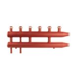 Collettore di distribuzione complanare per centrale termica con attacchi con girello interasse 125 mm