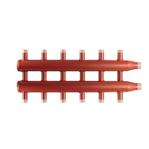 Collettore di distribuzione complanare per centrale termica con attacchi filettati interasse 125 mm