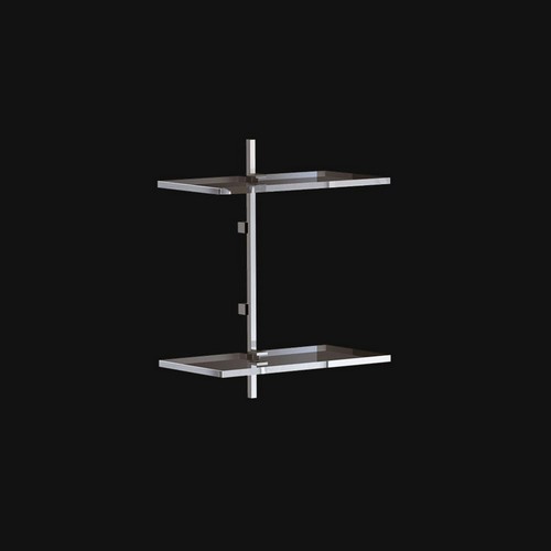 C442-C L’immagine ha solo scopo illustrativo, per misure/colori esatti fare riferimento alla descrizione e/o alla scheda tecnica. Scaffale a due piani in ottone cromato e plexiglass trasparente.