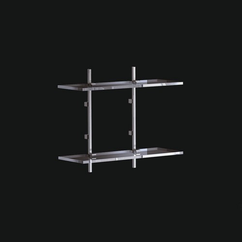 C452-C L’immagine ha solo scopo illustrativo, per misure/colori esatti fare riferimento alla descrizione e/o alla scheda tecnica. Scaffale 2 piani finitura in ottone cromato e plexiglass trasparente.