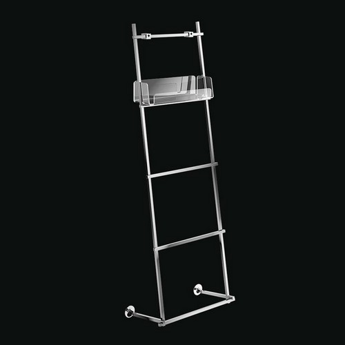 C481-C L’immagine ha solo scopo illustrativo, per misure/colori esatti fare riferimento alla descrizione e/o alla scheda tecnica. Scaffale a scaletta con 4 barre e 1 vaschetta, finitura cromata, in ottone e plexiglass trasparente. Applicazione con viti.
