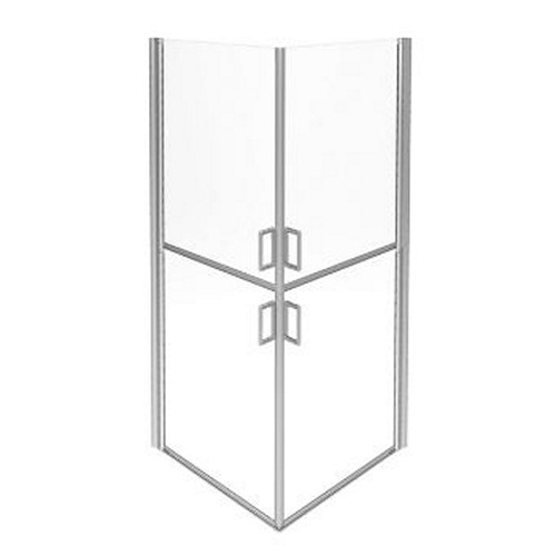 Box doccia con ante divise in due metà apribili separatamente. Realizzato in vetro laminato di 8 millimetri di spessore.