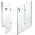 Box doccia con ante divise in due metà apribili separatamente. Realizzato in vetro laminato di 8 millimetri di spessore.