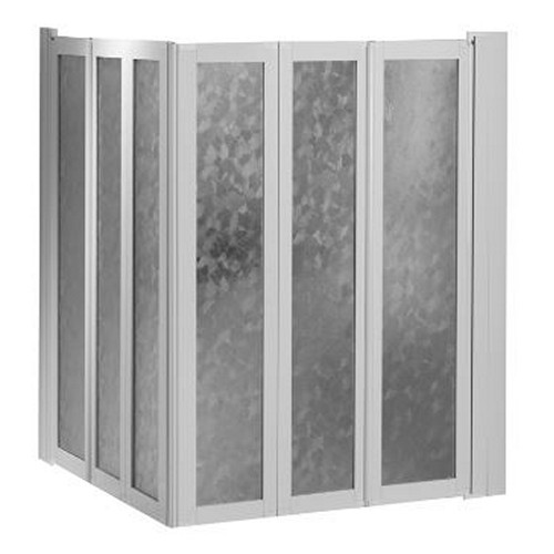 Box doccia ad angolo – basso – a due ante con tre pannelli pieghevoli per ogni lato, dotati di cerniere con rotazione di 180 gradi