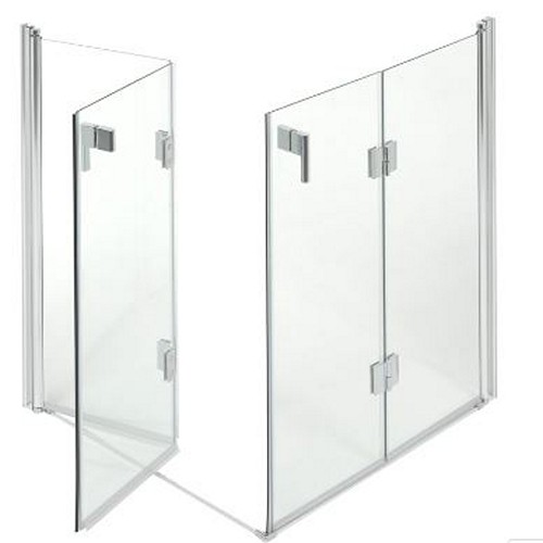 Box doccia basso con ante ripiegabili su se stesse apribili a libro. Realizzato in vetro di 6 millimetri di spessore e struttura in alluminio brillantato