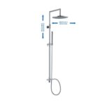 C56D40548CR Colonna doccia quadra regolabile e orientabile deviatore e attacco flessibile con soffione e doccetta cromo SPHERA