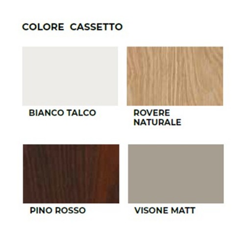 Disponibile nelle colorazioni: Bianco, Rovere naturale, Pino rosso e Visone Matt.