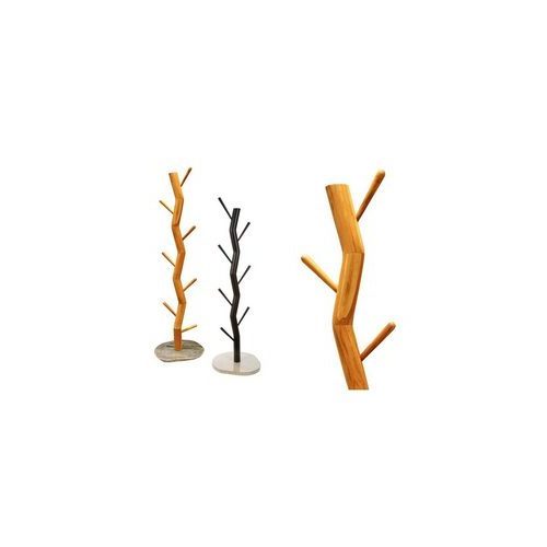 Albero porta accappatoio/porta salviette inTeak naturale con base in River Stone, disponibile anche in nero con la base in marmo a contrasto. Base con sagoma naturale irregolare.