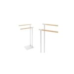 CP914_MIT-ON Piantana porta asciugamani in metallo satinato e legno naturale. Dotata di gommini antisdrucciolo. In pratico kit di montaggio ha viti, brugola ed istruzioni in dotazione.