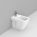 Bidet per appoggio filo parete, con foro centrale per la rubinetteria; fornito