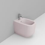 Bidet per appoggio filo parete, con foro centrale per la rubinetteria; fornito