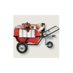 • Telaio in tubolare di acciaio verniciato, montato su ruote pneumatiche. Cassetta