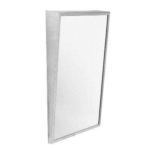 Specchio bagno in vetro FLOAT. Munito di una cornice in acciaio inox, finitura satinata, con inclinazione, fissa, di 8 gradi.