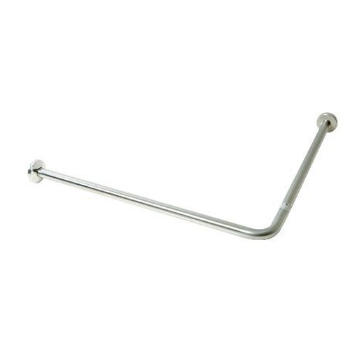Asta tenda doccia ad “L”, realizzata con tubo in acciaio inox – AISI 304, diametro 32 mm. – munita sistema di fissaggio con flange e copri-flange in acciaio inox. L’articolo è fornito di anelli in derlin