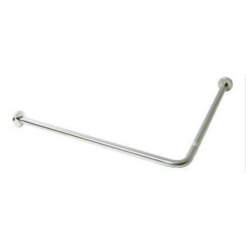 Asta tenda doccia ad “L”, realizzata con tubo in acciaio inox – AISI 304, diametro 32 mm. – munita sistema di fissaggio con flange e copri-flange in acciaio inox. L’articolo è fornito di anelli in derlin