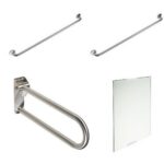 Impugnatura di sicurezza ribaltabile, realizzata con tubo di acciaio inox – AISI 304 -, finito esternamente con smerigliatura meccanica.
