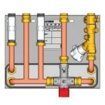 Stacchi di contabilizzazione per acqua sanitaria, con miscelatore termostatico integrato, completi di:
