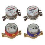 Contalitri di acqua sanitaria a getto singolo, per misura dei consumi di acqua calda sanitaria (ACS) o acqua fredda sanitaria (AFS). Sezione di misura della portata e quadrante circolare.